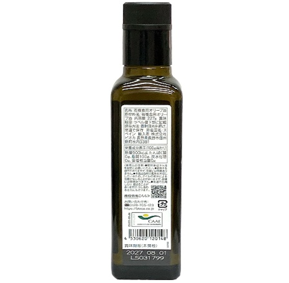 | 備考 | EUオーガニック認証・スペインアンダルシアオーガニック認証CAAE・有機JAS認証 |