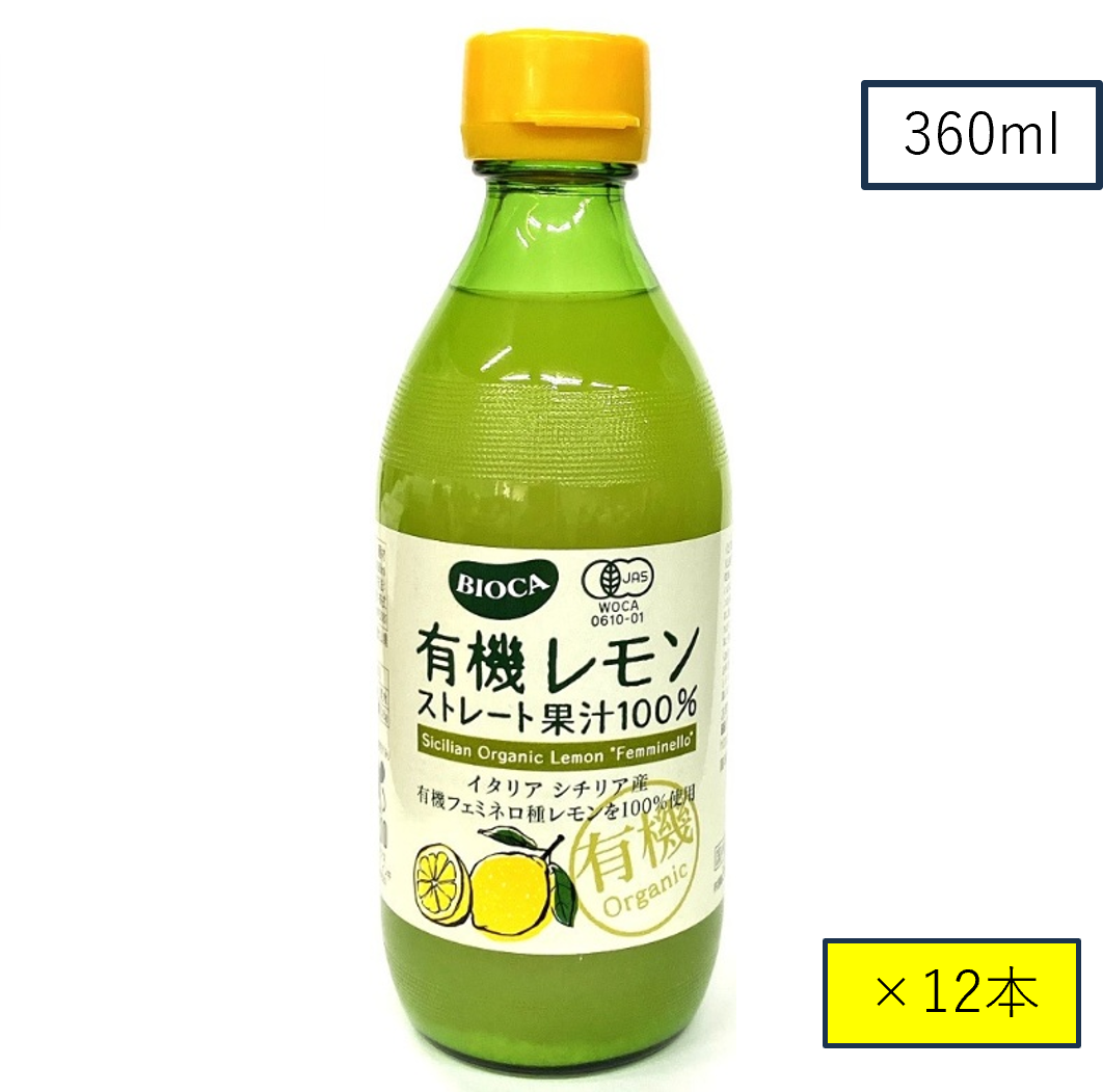 【箱買い特別価格】有機レモンストレート果汁100%(360ml) 12本入り